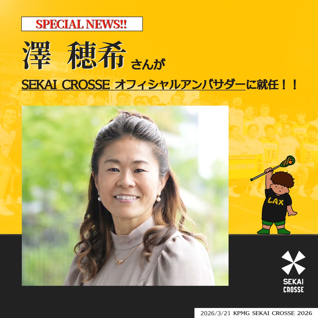 スポーツとカルチャーが交差する国際イベントが今年も始動する。2026年3月21日(土)に富士通スタジアム川崎で開催されるラクロス国際大会「KPMG SEKAI CROSSE」のオフィシャルアンバサダーに、さらば青春の光さん、野呂佳代さん、澤穂希さんの就任が決定しました。